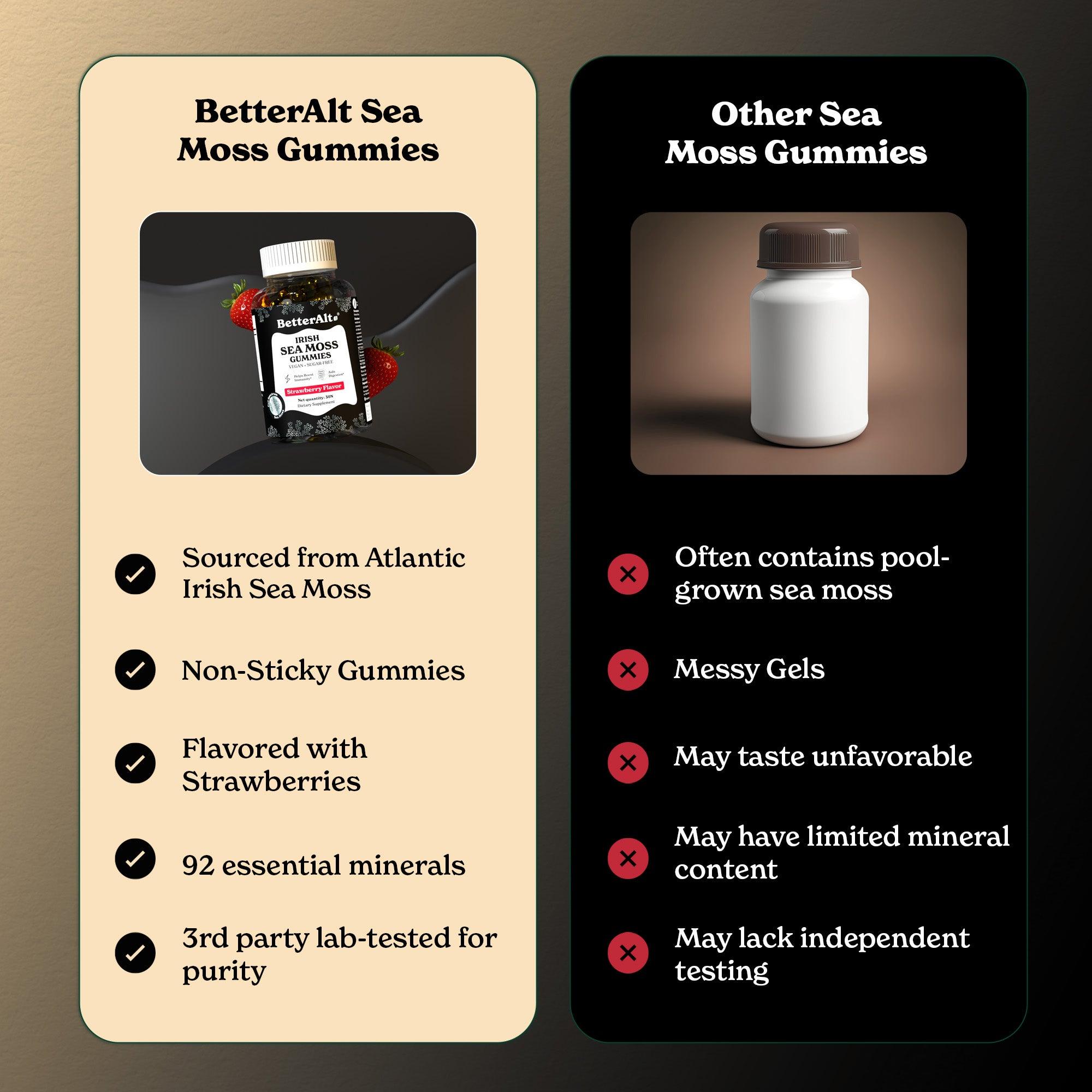 - BetterAlt’s Sea Moss Gummies are a convenient and delicious way to support your daily wellness.