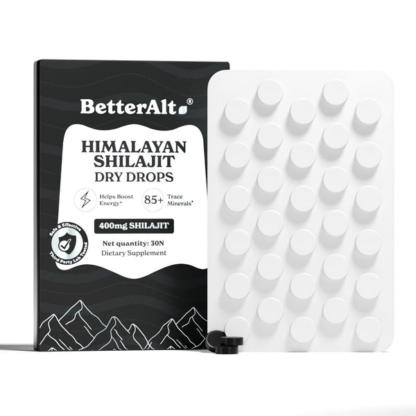 - Experience the power of nature with BetterAlt’s Shilajit Dry Drop Tablets. Each tablet contains 400 mg of pure Himalayan Shilajit resin, packed with over 85 essential minerals to help support sustained energy, enhance stamina, improve focus, and reduce feelings of fatigue.
