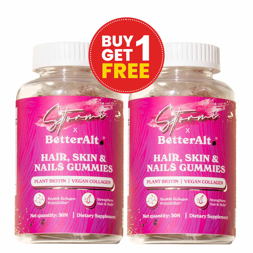 Stormi X BetterAlt Hair, Skin, and Nail gummies combine vegan collagen, hyaluronic acid, natural biotin, and beetroot powder to help you achieve glowing skin, stronger nails, and luscious hair.
